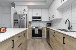 Discover modern living in this amenity-rich, pet- and family-friendly building. The kitchen features Samsung stainless steel appliances, soft-close cabinetry, and quartz countertops. The spacious living room opens onto a large deck for great outdoor living. Enjoy wide-plank flooring, a carpeted bedroom, and a bright 4-piece bath with a soaker tub. The home includes an in-suite laundry room with a leak detection system and plenty of storage. A designated underground parking stall and adjacent storage locker add convenience. Built Green with triple-pane windows and a heat pump for efficient heating and cooling. The strata offers top-tier amenities including a fitness center, indoor lounges, a dog run, community garden, recreation room, guest suite and rooftop deck. All this is just steps from coffee shops, restaurants, and daily essentials—offering the perfect mix of comfort and urban convenience.