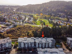 Welcome to Belmont Residences East—where modern design, walkable convenience, and a peaceful natural setting come together. This spacious 2-bedroom home features an oversized south-facing balcony overlooking the tranquil greenbelt—a perfect backdrop for slow morning coffees, alfresco dinners, or sunset drinks with friends. Inside, enjoy a contemporary kitchen with quartz counters and a full island, wide-plank vinyl flooring, ample built-in storage, and generous windows that invite in warm natural light. The spa-inspired ensuite offers his-and-hers sinks, while a heat pump with AC ensures year-round comfort. Amenities include secure underground parking, assigned stall with EV rough-in, a storage locker, bike facilities, a pet wash station, outdoor playground, and access to the Belmont Club with lounge spaces, work areas, and a kids’ playroom. A refined home in a standout location. Belmont Market & Westshore Mall at your doorstep. Call your REALTOR® today!