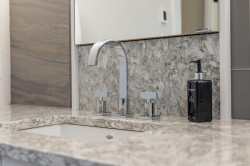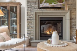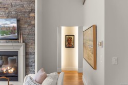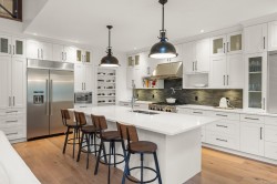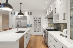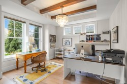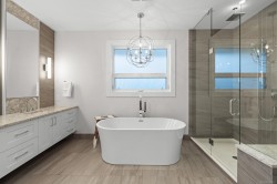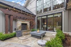 BEAR MOUNTAIN PARADE OF HOMES Saturday January 31st, 1-3pm......Custom built by New West Developments, this exceptional home showcases refined design and superior craftsmanship. An oversized pivot door opens to a spacious entry and open-concept living, dining, and kitchen finished with white oak engineered hardwood. The chef's kitchen offers quartz countertops, stainless steel appliances, wine fridge, abundant cabinetry, hot water on demand, and a concealed pantry behind a custom wine rack. The main-level primary suite features French doors to the private rear yard, walk-in closet, modern concrete fireplace, and spa-inspired ensuite with freestanding tub, rainfall shower, and heated floors. A generous main-floor den with custom French doors is ideal for a home office. Upstairs includes two bedrooms, a full bath, and a bonus loft overlooking the main living area. The private backyard is an entertainer's retreat with dual water features, flagstone courtyard, irrigation & curated lighting