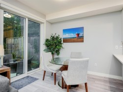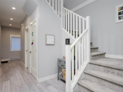 Wake up surrounded by nature while staying close to everyday amenities in this 2021-built modern half duplex backing directly onto Mill Hill Park. Located at the end of a quiet cul-de-sac, this 3 bedroom, 3 bathroom home offers privacy, a peaceful green outlook, and direct trail access.The well-designed layout features main-level living with all bedrooms upstairs, plus a convenient upper-level laundry. Finishes include laminate flooring, stainless steel appliances, quartz countertops, on-demand hot water, and a heat pump for efficient year-round comfort. A single-car garage adds practical storage.The fully fenced backyard is ideal for pets, children, or outdoor enjoyment. Close to schools, parks, and downtown Langford, with easy access to the Westshore, Victoria, and up-Island routes. A great opportunity to own a newer home in a connected, lifestyle-focused location