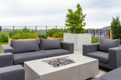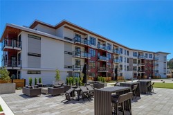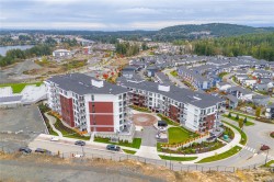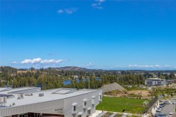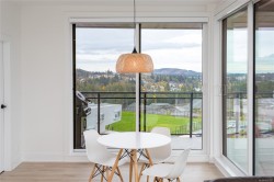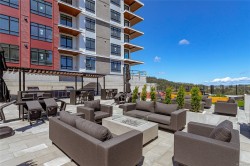 Welcome to Solaris at Westhills, a Built Green Certified community blending sustainability with modern elegance. This well-appointed 2-bedroom plus den, 2-bath condo features 9’ ceilings and lake views. The gourmet kitchen includes gas appliances, island, pantry, cabinetry, stone counters, tiled backsplash, and matte black hardware. The primary suite has a walk-in closet with custom shelving; the den suits office or guest room. Walk-in laundry room with full-size washer and dryer. This smart home provides integrated control for climate, lighting, and security, plus A/C and baseboard heat. Secure building with visitor access. EV-ready stall in a gated parkade, plus car wash, bike/locker storage, and pet wash. Landscaped courtyard with outdoor kitchen, dining areas, seating, and gas firepits. Surrounded by parks, trails, and urban amenities—shopping, dining, movies, cafés, more. Call your realtor now to book a viewing!