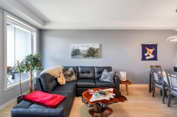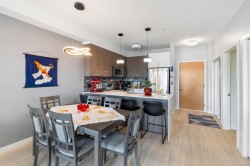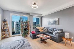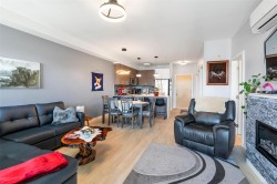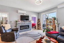 Bright and beautiful 2 bed, 2 bath condo in Pacific Trilogy Two—a modern 6-storey building in the heart of downtown Langford. This like new home features a functional open-concept layout with 9-ft ceilings, a chef’s kitchen with quartz countertops and stainless appliances, and spacious living/dining areas with an electric fireplace and access to a sunny balcony—perfect for your morning coffee. The primary bedroom includes a 3-piece ensuite with built-in closet organizers. Comfort is ensured year-round with an efficient heat pump offering heating and air conditioning. Additional owner upgrades include heated tile floors in both bathrooms, custom Murphy bed, fresh paint, updated tile work, Lutron smart switches, and new LED lighting. Secure parking included with E/V rough in. This award-winning, pet-friendly building also offers a fitness centre, bike storage, and a 91 Walk Score -just minutes to shopping, restaurants, parks, and recreation. Vacant and available for immediate possession.