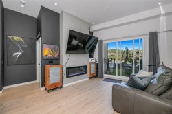 Step into refined West Shore living with this nearly new, designer-inspired two-bedroom home. Towering 12–14-foot ceilings enhance the sense of space, while one of the building’s largest terraces invites effortless entertaining or quiet morning coffee in the sun.Every element speaks to quality and intention. The gourmet kitchen showcases quartz countertops, a tiled backsplash, and a full stainless steel appliance suite—including a gas range for the home chef. Ductless split heat pumps provide year-round comfort, complemented by a sleek linear fireplace feature wall that adds warmth and modern sophistication.Spa-inspired bathrooms feature tiled floors and surrounds, blending form and function beautifully. Beyond your door, enjoy rooftop patios, inviting amenity rooms, and a fully equipped fitness centre—all within one of the West Shore’s most sought-after communities.Perfect for those who value comfort, craftsmanship, and contemporary design in equal measure.