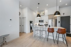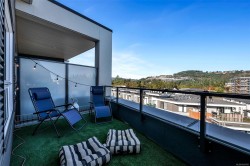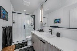 Step into a home that feels elevated the moment you arrive. This nearly new, designer-inspired two-bedroom residence captures refined West Shore living, where light, space, and intention align. Soaring 12–14-foot ceilings create an airy calm, while one of the building’s largest terraces becomes your private retreat — perfect for morning sun or relaxed evenings.Inside, every detail balances beauty and performance. The gourmet kitchen features quartz surfaces, elegant tilework, and a full stainless steel suite with a gas range ready for inspired cooking. Year-round comfort flows through ductless heat pumps, anchored by a sleek linear fireplace that adds warmth and modern style.Spa-inspired bathrooms offer a peaceful reset with timeless finishes. Beyond your door, rooftop patios, inviting amenity lounges, and a fully equipped fitness centre extend your lifestyle.This is more than a home — it’s a space for those who value comfort, craftsmanship, and contemporary design.