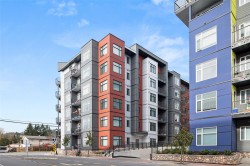Top-floor living at Langford Tower with west-facing views and a fantastic central location. This 2 bed, 2 bath layout features a spacious kitchen with abundant cabinetry, a large island, and an open living and dining area filled with natural light. Both bedrooms are generously sized and thoughtfully separated for privacy. The generously sized primary suite includes a walkthrough closet leading to a large 3-piece ensuite. Step outside to your 21' x 5' ft balcony to take in mountain views and evening sunsets. This impeccably maintained unit includes in-suite laundry, secure underground parking, bike storage, and is located in a pet-friendly building (buyer to verify bylaws). In the heart of Langford, you’re just steps from cafés, restaurants, gyms, and everyday conveniences (Westshore Town Centre, transit, and highway access are just minutes away). Vacant and turn-key, this is a fantastic opportunity buyers or investors seeking a modern home in a vibrant and growing community.