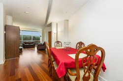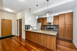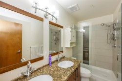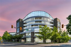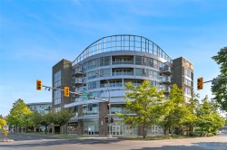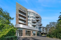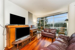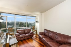 Luxury penthouse living with views and style! Spacious 2-bedroom, 2-bath + den top-floor unit (Steel & Concrete Building) with bright open layout and mountain views. Quiet side of the complex. Features high ceilings, floor-to-ceiling windows, hardwood floors, fireplace, and balcony. Modern kitchen with ¾ granite countertops, tiled backsplash, stainless steel appliances, new microwave, and eating bar. Primary bedroom offers a deluxe ensuite with double sinks and glass walk-in shower. Freshly painted with separate laundry room. Includes secure underground parking, storage locker, and bike storage. Building amenities: rooftop patio with Cobalt Blue pool, lounge area, and running track. Well-managed, upscale complex close to shopping, dining, transit, walking trails, recreation, and Royal Roads University. Additional parking available