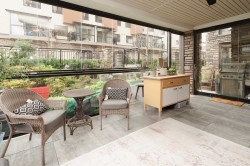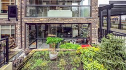 This executive 3 bed , 2 bath ground floor corner unit features a chefs kitchen including a gas cooktop, double oven and soft close cabinets with pull out drawers. The large primary bedroom has a walk in closet and a 4 piece ensuite with double sinks. One of the bedrooms has custom built-in cabinets and a desk, making it an ideal home office. Enjoy BONUS indoor/outdoor living space in the 11'6X21'9 solarium with an electric fireplace. The glass is retractable for summer yet fully enclosed for winter with a lockable door that leads to a laneway for easy guest entry. Outdoor grilling is made easy with the gas hookup on the patio. Included are two underground parking stalls and a rare XL storage locker with roll up door. Amenities include playground, rec room, gym, and community garden beds.