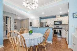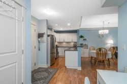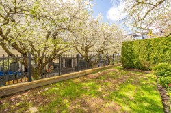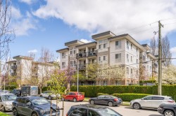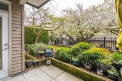 Welcome to The Sonnet! A well-maintained gated building with very low strata fees. This ground-floor, south-facing 1-bedroom + flex space unit offers abundant natural light with tall windows, 9 ft ceilings, and crown moulding. The bright, open-concept kitchen features upgraded appliances and a new sink. The bathroom was fully renovated in 2021 with a new vanity, soaker tub and in-floor heating. The spacious living area opens to a private patio, perfect for entertaining. Includes built-in A/C, only a couple of years old. Central, bike-friendly location within walking distance of the future SkyTrain station. Large storage locker on the same floor for convenient access. Amenities include fitness and recreation rooms, secure bike storage, and ample visitor parking. Book your showing today!