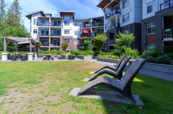 With over 1200sqft of living space this bright and spacious 3 bed ground floor unit feels like a home! Enjoy the abundance of natural light, gourmet kitchen with quartz counter tops & high end appliances, a big in suite storage room, plus a spacious primary bedroom with walk-in closet & a 5 piece ensuite. A large sliding door opens up to your own private patio leading out to the quiet & secure community courtyard (backing onto protected green space) with fire pit, comfy chairs & tables & a children's play area. Within walking distance to Brydon Park, transit and the new future SkyTrain! The unit comes with 2 parking stalls and bike lockers are available. Amenities include a gym, guest suite, EV charging, and dog wash station. Pet friendly complex, 2 allowed. This one is INCREDIBLE VALUE.