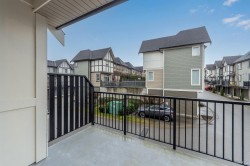 POLYGON - Ashbury & Oak. Beautiful 3 Bed + Den (4th Bed) / 3 Bath townhome featuring a bright, spacious open-concept layout with 9' ceilings. The ground floor offers a den conveniently located by the front entrance-ideal as a 4th bedroom or a perfect home office for a home-based business. Double side-by-side garage and a fully fenced, oversized front yard for added privacy and outdoor enjoyment. Enjoy an impressive 8,000 sq.ft. resort-style clubhouse with outdoor pool, hot tub, fitness centre, billiards, pet washing station, kids' playroom, and guest suites. Upgrades include brand new carpets and a new fridge. Prime location within walking distance to R.E. Mountain Secondary (IB Program), Yorkson Creek Middle, Lynn Fripps & Uplands Elementary, plus Carvolth Bus Exchange, Town Center.