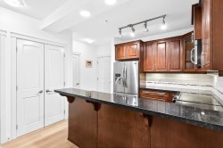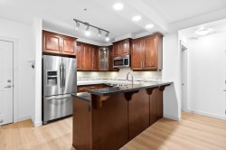 Rarely available ground level unit in the desirable Walnut Ridge at Yorkson Creek! This spacious and well maintained 2 bedroom, 2 bathroom and den boasts an open concept floorplan with beautiful new flooring and paint throughout, 9' ceilings, granite countertops, stainless steel appliances, heated bathroom floors, heat pump/air conditioning, and much more. Incredible location is front and centre as this unit is just steps to the Incredible Yorkson Community Park, various levels of schools, shopping, restaurants, recreation and easy access to transit. Also included are 2 parking stalls and a large secure roll down storage locker.
