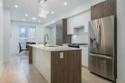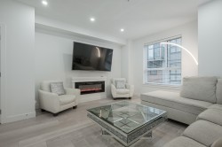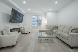 Welcome to Terraces 3 in the heart of Langley! This modern 3-bedroom townhome offers over 1,400 sq. ft. of open-concept living with all levels above ground. Enjoy 9-ft ceilings on the main floor, carpeted bedrooms and large Energy Star windows that flood the home with natural light. The kitchen features stainless steel Whirlpool appliances, quartz countertops and a spacious island—perfect for everyday living and entertaining. Retreat to your impressive 560+ sq. ft. private rooftop terrace with mountain views, ideal for relaxing or hosting guests. Energy-efficient forced-air heating. Steps to parks, shopping, restaurants, transit, Willowbrook Mall, and the future SkyTrain extension. A fantastic opportunity in central Langley!