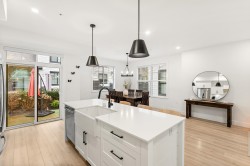 Modern Artisan townhome meticulously crafted by Miracon & loaded with all the extras. This 3-bedroom, 2.5-bath end unit offers an expansive floor plan with oversized windows, stainless steel appliances including a gas range, and light, neutral finishings throughout. Wide-plank laminate flooring on all levels, white shaker cabinetry & quartz counters elevate both the kitchen & bathrooms. The primary bedroom features vaulted ceiling and a walk-in closet with custom wood cabinetry & a spa-inspired ensuite. Enjoy a south-facing fenced backyard with synthetic grass, main-level access and gas hookup, plus a double-car garage with extra storage and A/C. Quick access to Hwy 1, top-rated schools, and all amenities. **OPEN HOUSE SUNDAY FEB.1st 2-4PM**