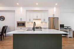 SEE VIRTUAL TOUR! Tucked away on the quiet side of the complex, we welcome you home to Evergreen and this 3-bed, 3-bath Murrayville townhouse. Built by award winning developer Isle of Mann, this home features just under 1500sqft of living space. Your bright open–concept kitchen features Quartz counters w/ large island, SS appliances, gas stove, 2pc powder, and pantry. The living room is great for hosting and features a lovely fireplace feature wall. Modern colors throughout, 3 large bedrooms upstairs, and herringbone tile in the ensuite give this home character. With parking for two (garage can fit a pickup truck), this home offers both practicality and comfort. Located close to shopping, recreation, and 5 corners. Steps away from Starbucks, Credo Christian Schools.