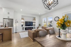 Looking for a new home without GST or Strata? How about a 2 bed MORTGAGE HELPER? Step into this beautiful 2023 Half-Duplex, designed with families like yours in mind. The open-concept main floor features a large den, 2pc bath, large covered patios in front and back, and a south-facing grassy backyard. Upstairs are 3 beds & 2 full baths, vaulted ceilings & full laundry rm. Basement offers a brand new 2 bed/1 bath mortgage helper +laundry +separate entry. Enjoy the detached garage & driveway w/ abundance of street parking. Located steps from excellent schools (Peter Ewart & RE Mountain), parks, Langley Events Centre, shops & more. Backed by a 2-5-10 warranty and move-in ready. Don’t miss this! OH CANCELLED
