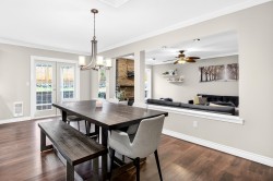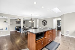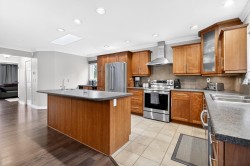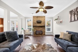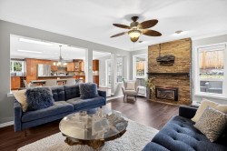 This charming Craftsman rancher offers warmth, character, and a highly functional layout. A slate entry with built-in bench seating and classic detailing welcomes you inside. The kitchen features stainless steel appliances, a generous island, pantry, pull-out storage, and built-in wine racks. The dining area opens to a sunken family room with a striking floor-to-ceiling stone fireplace and French doors leading to a private south-facing yard. Hot tub hookups are located just outside the primary bedroom. The home also includes a spacious primary suite with ensuite, two additional bright bedrooms, a separate living room with gas fireplace, landscaped yard, and a detached 179 sq ft studio with 220 power and private entry - making it ideal for a home office