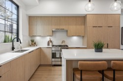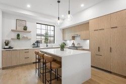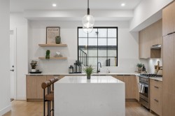 NON STRATA Duplex at Archer at Latimer by North Arc Properties. 2025 HAVAN Award Winners. Laminate flooring throughout. 2/5/10 warranty. Main level living is an open plan featuring 10' ceilings, oversized windows & large south facing patio. Award winning kitchen features integrated Fisher & Paykel appliances, floating shelves, quartz backsplash and island with stylish quartz waterfall edge. Private powder room. Upper level primary bedroom with vaulted ceiling, 4 pc ensuite and large walk in closet. 2 addl upper bedrooms & full washroom, dedicated laundry area with quartz countertop and spacious upper landing with nook that can be used as a home office. Fully finished lower level with separate entry. Top school catchment. Open 12-5 Sat/Sun (or by appt).