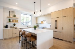 Archer At Latimer by North Arc Properties. 2025 HAVAN Award Winners. Stunning non strata duplex on a very quiet street. Laminate flooring throughout. Main level is an open plan with soaring 10' ceilings, oversized windows, wide layout and private powder room. Kitchen features Fisher & Paykel integrated appliances, island with quartz waterfall edge, designer pendant lights & storage throughout. Fenced rear yard. Upper primary bedroom with vaulted ceiling, 4 pc ensuite & large walk in closet. 2 addl bedrooms upstairs, a full washroom, upper landing area for a home office and full size laundry with quartz countertop. The fully finished lower level offers a separate entry & garden view. Top rated schools. Est completion late March 2026. Show home open 12-5 Sat/Sun (or by appt) at 19750 76 Ave.