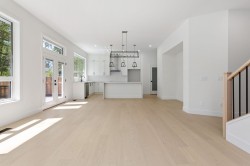 Welcome to Brighton North by Foxridge Homes! This 5 bedroom Hardwick plan boasts an open concept main floor with large flex room, large living and dining, a gourmet kitchen with stainless steel appliances and waterfall edge island, perfect for entertaining. 3 generous bedrooms upstairs and 3 full bathrooms with 1 bedroom in the basement. Fully finished 1 bedroom legal suite in basement with stainless steel appliance package. Heat pump, engineered hardwood on main level, private fenced South facing rear yard backing onto private green space. Located just minutes away from family- friendly parks, walking distance to RE Mountain Secondary school, Donna Gabriel Robins Elementary school, and an endless list of amenities including Willoughby Town Centre and the Langley Events Centre!