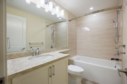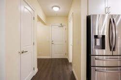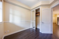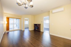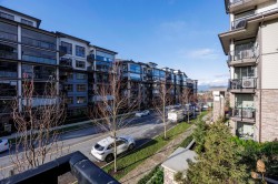 YORKSON PARK! Stunning MOUNTAIN VIEW! VIEW!/ Total 991 sf 2 BED 2 BATH+ Den, Mountain view facing all year-round usable solarium w/ gas BBQ hook-up (Gas included in strata fee), Energy efficient heat pump / A/C in living room + bedroom, Quartz countertops. Heating flooring& anti-fog mirrors in the bathroom, Solid wood closets and doors throughout, European laminate flooring , 2 parking + 2 huge rolling door storage. Amazing location - 1.3 acre city park & right across from Carlvoth Bus Exchange and Highway #1. Hybrid building (wood +concrete), Sound -dampening insulation flooring. Move in ready. O/H Sunday Feb.01 2-4pm