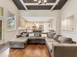 Rare find with ultimate privacy and exceptional space—room for the whole family! 6 bedrooms and 6 baths over almost 4300 square feet. Bright open-concept great room with lofty ceilings, chefs kitchen showcasing an oversized island, granite countertops, stainless steel appliances, and gorgeous hardwood flooring throughout. Bonus Primary bedroom on the main floor. Lower level contains 3 spacious bedrooms, 2 full baths, and a family room with deck access to the backyard. Lower daylight walkout level features a legal 2BD/2BTH suite. Close to town, parks, schools, shopping, and all amenities. Tons of parking plus natural gas generator, A/C, solar panels, and EV charging.