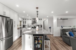 Classic Brookswood family home in a conveniently located, well established neighbourhood. This professionally updated home features a beautiful kitchen with an extra large island and built in beverage fridge, ideal for everyday living and entertaining. Step out from the kitchen to the large south facing deck, and lower patio area, perfect for summer gatherings and evening barbecues. The main floor also offers 3 large bedrooms, updated bathrooms, including a private ensuite. Downstairs provides excellent flexibility with space easily suited for extended family or use as a secondary suite/mortgage helper. All this in a safe walkable location close to shops, parks, Brookswood Secondary, and Belmont Elementary. A great family focused area that won't last long. Open Sat 2-4