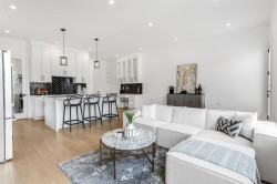 Step into luxury with this stunning, brand-new three-storey corner unit row home—designed for modern living and unbeatable convenience. The main floor showcases a bright, open-concept layout featuring a spacious living room, elegant dining area, cozy family room, gourmet main kitchen, and a bonus spice kitchen—perfect for entertaining or family meals. Upstairs, enjoy a private master retreat complete with an ensuite, plus three bedrooms and a full bathroom. The fully finished basement offers a large rec room with a full bath, plus a separate entrance to two bedrooms, a living room, and an additional bathroom. Best of all, there are NO strata fees! Located just minutes from schools, shopping centres, and quick access to Highway 1, this is the perfect place to call home.