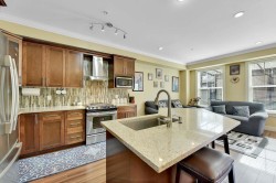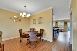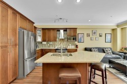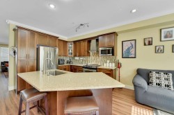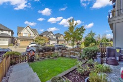 Rarely available! This beautiful row home with no strata fees is located in desirable Yorkson. Welcome home to your 4-bedroom and 3.5-bath property. The main floor features a formal living room and dining room. The gourmet kitchen has newer countertops and backsplash, a gas stove, and an oversized breakfast bar. Adjacent is the family room with a fireplace and access to the oversized deck with a new glass awning to enjoy year-round. Upstairs has 3 bedrooms; the master bedroom is oversized with a spa-like ensuite. Downstairs is an open rec room or bedroom with a full attached bath. There's a side-by-side double garage with a full-size driveway that will fit two big trucks for a total of 4 parking spots. It is located on a quiet street, close to shopping, restaurants, and schools.