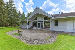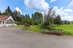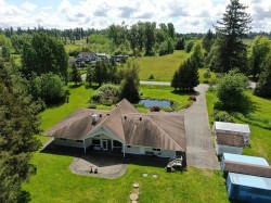 First time on Market in 50 years! 10.7 Acres only blocks from Downtown Langley, schools, shopping and more. This 2,026 sq ft rancher was custom built in 1997 for this owner. It features large vaulted ceilings, huge great room with floor to ceiling windows, open kitchen/dining concept and cozy fireplace. 3 bedrooms including large primary bedroom and ensuite. Huge double garage/workshop attached. The property has 312 ft of frontage by 1480 ft deep and has approx 3 acres of cleared area with lawn and field, a small pond in front and a small stream runs across the property where local waterfowl and wildlife can be seen. Treed back section creates privacy and provides many options for the next owner.