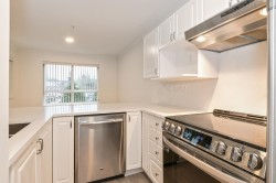 Eaglecrest! Nestled in Langley’s desirable Murrayville, this spacious 1,187 sq. ft. home features two bedrooms and a den with two full washrooms. Bedrooms are thoughtfully situated on opposite ends to ensure maximum privacy. The primary suite is a true retreat, boasting a refreshed ensuite with a new shower. This bright, east-facing unit shines with recent upgrades, including sleek new flooring, durable quartz countertops, new washer/dryer and range. The functional layout is complemented by in-suite laundry, a cozy gas fireplace, a private storage locker, and two side-by-side parking stalls. Enjoy premium amenities including a library, gym and clubhouse. Experience an exceptional lifestyle within walking distance to stores, schools, transit and WC Blair Pool.