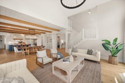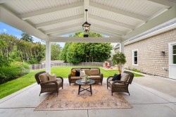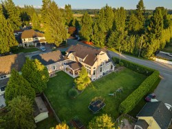 Su Casa designed Hamptons style 7 bed 5 bath home on a large beautifully landscaped lot with wonderful neighbours and surrounded by a privacy hedge of laurels & flower gardens, views of Golden Ears and room for a pool & sports court. This spectacular luxury home with soaring 18 foot ceilings and a floor to ceiling fireplace is flooded in natural light and perfect for large family gatherings (the dining area accommodates a table for 16 and is adjacent to a wall of glass nana doors leading to a covered outdoor living area! ). Main floor also has a children's play room, home office, and mud room with a dog wash. With an authorized 2 bed suite and potential suite above the garage, this would make a wonderful multigen property. Home is where your Storey begins!