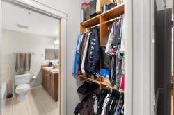 YORKSON CREEK in the heart of Willoughby! 2 bedroom plus storage (2nd bedroom has a door, closet & vent but no window), stainless steel appliances, AC, in suite laundry and a private Southern exposed fully balcony overlooking courtyard / playground. Primary bedroom has a walk-through closet and a 5 piece bathroom with dual vanities, granite counters, soaker tub, walk-in shower, and heated tile floor. Maple plank flooring. Living and dining room open to the kitchen, granite counters and eating bar. 2 parking spaces PLUS 1 storage locker in parking stall with power which can be modified for EV charging hook-up level 2 charger. CHECK OUT THE VIDEO TOUR!