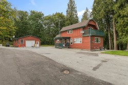 Calling all car enthusiasts! Are you looking for a unique property that’s private, peaceful, & has room for all your toys? This one-of-a-kind home sits on 4.26 acres in desirable Glen Valley. Featuring a huge 39' x 23' garage, plus three additional outbuildings, all with power & plenty of open parking. The home offers interlocking pine wood panel walls, an updated kitchen with SS appliances & a gas stove, newer windows that capture beautiful natural light & views of the property, carpet, an alarm system, a newer washer/dryer, a newer hot water tank, & a generator. The primary bedroom is impressive, boasting vaulted ceilings, over 500 sq. ft. of space, a spacious walk-in closet, & an ensuite with a Jacuzzi tub. Enjoy summer evenings relaxing on your private balcony. Downstairs includes a ga