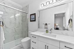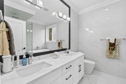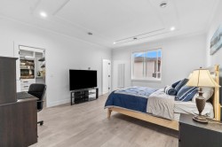 Brand new luxury home in the Brookswood-Langley area. This 3-level residence offers 9 bedrooms and 9 bathrooms with radiant heating, quality construction, high ceilings, and excellent natural light. Situated on a 6,998 sq. ft. lot with spacious living throughout. The main floor features elegant living and dining areas, a large family room, designer kitchen with separate wok kitchen, 1 bedroom ensuite, private office and mudroom. Upstairs offers a generous primary bedroom with ensuite and 3 additional bedrooms, and a loft. The fully finished basement includes a 2x-2-bedroom suite, with separate entry, ideal for extended family or rental income. Recreation/media rooms, and bar for entertaining. Professionally upgraded yard with red mulch, defined landscape borders.