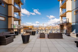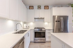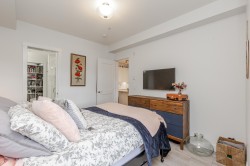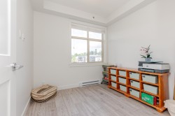 Welcome to Grayson in Willoughby Town Centre, a QUALITY build by Quadra Homes! Located steps from the best school in the area (Donna Gabriel Robbins), this is the perfect starter home for young families w/ a bright SOUTH facing space offering sleek white kitchen with customizations including a full height pull-out storage pantry, slide out garbage and recycling centre, and gas stove. The generous covered patio also has a gas BBQ hook up! The primary bedroom leads to a luxurious ensuite w/ double sinks, & has a walk-in closet w/ melamine closet organizers (no wire shelving). Other stand out features include Luxury acoustic rating for sound proofing, a rooftop patio w/fire pit, gym, meeting and party room, 2 parking, roll up storage, and low Strata fees. Home is where your Storey begins!