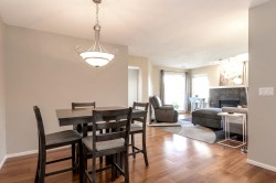 TOP FLOOR CORNER 2 bed/2 bath, feels like a home, spacious entry into a bright open living /dining area, hardwood floors /gas fireplace (gas included in maintenance)Separate kitchen, lots of cabinet space and walk out to corner patio with mountain views. Primary has updated ensuite and walkin closet. The laundry has extra storage space. This is a great building well looked after, new roof, repiping and new fencing in last 5 years. Building offers, bike room, party room gym and strata includes gas and hot water.Great walkable location near Willowbrook Mall, parks, school, and transit... just steps away to future Skytrain station.Includes (2) parking stalls #31 + #32 Locker #67. One pet(dog or cat) is allowed and not to exceed 20KG(44lbs) height 36cm(14inches)