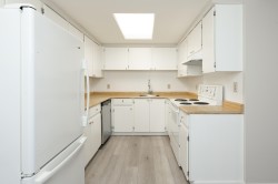 Affordable adult living on the top floor! Lovely 1 bedroom plus den south-facing unit with wide patio. Freshly painted and full bathroom renovation in 2025 with walk in shower for ease if mobility challenged. Maintenance pays for heat, hot water. Laundry room is located right next door. Call today to view this unit !
