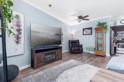 This one bedroom plus den at The Serenade offers the flexibility of a two-bedroom style layout, with a well-sized den that can easily function as a second bedroom. With 955 square feet of interior space and a sunny south-facing balcony with park and mountain views, it’s one of the largest floorplans in the building. The open living and dining area connects seamlessly to a polished kitchen with quartz counters, quality stainless appliances, and fresh updates including new flooring, paint, and carpet. Located next to Douglas Park and steps to Langley’s best restaurants, cafés, shopping, and transit. A fitness centre and residents’ clubhouse round out a home that works for real life.