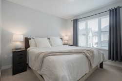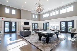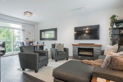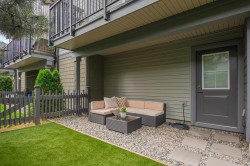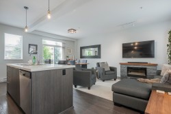 Ashbury + Oak! This bright and spacious 2-bedroom townhome features designer finishes throughout, an open-concept design, oversized windows, double garage. The gourmet kitchen features quartz countertops, shaker-style cabinets, & SS appliances, flowing seamlessly into the living area, where a cozy fireplace with custom stonework & a wood mantel creates a beautiful focal point. Upstairs, offers 2 bedrooms, a convenient laundry room, and plenty of natural light—designed for both comfort and functionality. Outdoor living is made easy with a private, fenced yard featuring low-maintenance astro turf, plus a sunny deck perfect for relaxing or entertaining.Enjoy resort-style amenities including a clubhouse, gym, pool, hot tub, and guest suite—all just minutes from schools, recreation, & shopping!