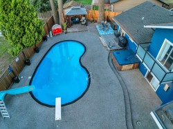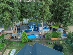 Brookswood beauty on a quiet cul-d-sac, a perfect family home, excellent for hosting family events & parties. This family home features 5 bedrooms plus a 2 bedroom suite. An attached double garage PLUS a detached fully powered double garage, a playground, inground pool, rubberized patio around pool. Decks and all on ¼ acre parcel. Inside is a lovely large kitchen with fairly new appliances. Must see is the secret playroom in one of the bedrooms and a sneaky tucked away little bedroom for that sleep over guest. Suite is legal and has a private entrance with a large balcony that gets absolutely the best sunsets ever seen.
