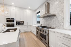 BROOKSWOOD SHOWSTOPPER! Custom built by the original owner 5714 sq ft 2 level home with 2 bedroom mortgage helper. Step inside to high ceilings & formal living room & office off entry. Control 4 smart home automation, 8' doors, European plumbing fixtures, back up gas generator & Schluter custom showers. A beautiful open floor plan for entertaining with windows across the back of home overlooking the private 11,422 sq ft quarter acre lot w turf. Covered patio area to enjoy all year around. Stunning chefs kitchen w quartz counters, white cabinets & gas range. Bonus wok kitchen off main area. Media room & wet bar area to enjoy the games. Bedroom on main floor.. Upstairs features oversized bedrooms & grand primary suite w spa inspired ensuite. Loads of parking & Triple car garage.