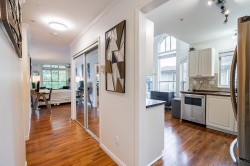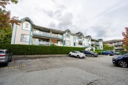 Welcome to Cambridge Court, a spacious top-floor corner home offering 1,228 sq. ft. of bright and airy living. Vaulted ceilings and oversized windows fill the space with natural light, while the east-facing balcony is perfect for your morning coffee or relaxing after work. This well-maintained 2 bedroom, 2 bathroom layout features a generous living and dining area, cozy gas fireplace, full-size laundry room, and heated bathroom floors for year-round comfort. The proactive, well-managed strata includes gas and hot water in your maintenance fee. Ideally located within walking distance to shopping, restaurants, parks, and transit, just minutes from the future SkyTrain station. One secure underground parking stall included. Move-in ready, book your private tour today!