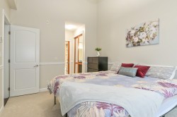 Top floor two-level junior 3 bedroom 2 bath offering townhouse style living. Features a large balcony with mountain views, granite counter tops, self closing cabinetry, new microwave and dishwasher, new carpets, and fresh paint throughout. A/C units in both primary bedrooms that provide move-in ready comfort. The upper level primary bedroom includes an ensuite with double sinks, soaker tub, walk in shower, heated floors, and a walk in closet with built in shelving, and in-suite storage. Includes two parking stalls and storage locker with electrical out for EV charging potential. The building amenities include a gym and a party room.