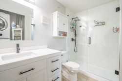 This stylish and spacious one-bedroom penthouse condo is the one you’ve been waiting for. Designed for entertaining, the kitchen features a generous quartz countertop, high-end lighting, and stainless steel appliances. The cheater ensuite boasts a stunning walk-in shower with matte black finishes, perfectly complemented by a brand-new vanity with quartz countertops.The primary bedroom is a dreamy, private retreat, while the sunny, covered patio offers a relaxing space and view of Mount Baker to enjoy year-round. An EV-ready 16AMP electric vehicle charger has recently been installed and is included in the sale. Book your private showing today—this exceptional home won’t last long. OPEN HOUSE FEB 15, 12-2PM