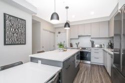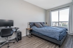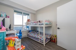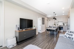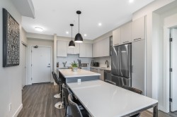 Welcome to EASTIN by Essence Properties, a modern boutique building in Willoughby known for quality construction and smart design. The Plan C 2-bed, 2-bath layout offers an efficient open concept with bedrooms on opposite sides for privacy, a bright living area, and a well-designed kitchen. The nearly new home features upgrades such as laminate flooring throughout and Air-Cond. in each room for year-round comfort.Stainless steel appliances and quartz countertops.The location is exceptional, Breathtaking views from the Balcony, close to top schools, Costco, shopping, parks, and major amenities, with the future SkyTrain station just minutes away. Combining convenience, style, and long-term value, EASTIN is an appealing choice for both living and investment. Open House Sunday Dec 21st,1-3pm.