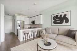 This bright 2-bed, 2-bath home offers modern finishes, open-concept living, and oversized windows that fill the space with natural light. Enjoy a private balcony with mountain views, a sleek kitchen with quartz countertops, and in-suite laundry for convenience. Located steps from shopping, dining, schools, and the future SkyTrain station, this unit offers unbeatable accessibility. With secure parking, pet-friendly policies, and a vibrant neighborhood, it’s the perfect blend of comfort, style, and investment potential.