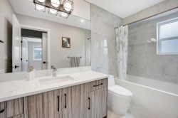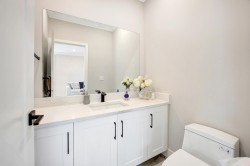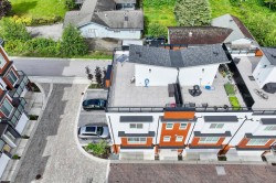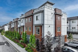 The Largest and most stunning townhome layouts in Willoughby. This meticulously kept 4 bedroom, 4 bathroom + den home offers exceptional design w/ countless upgrades. Enjoy over 700 sqft rooftop patio w/ gas BBQ hookup and hot tub rough in, plus a side by side double garage (EV ready). Features include 9 ft ceilings, highly efficient radiant in floor heating, heat pump w/ A/C, and hot water on demand for year-round comfort. Laminate and tile flooring throughout. The lower level offers a spacious bedrm w/ full bath, while the main level features open concept living, large pantry, powder room, & generous den. Prime walkable location steps to parks, trails, schools including Josette Dandurand Elementary, shopping, transit, and minutes to Hwy 1. A rare opportunity in an unbeatable location