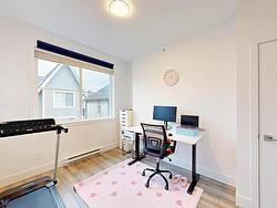 EVERLY GREEN by Qualico - Located in a quiet cul-de-sac in Willoughby Heights is central location to all amenities, shopping, parks and school. From the expansive 180 degree views from the rooftop terrace to the customized interior fireplace and bar area, everything you need to entertain this summer is right here. Extras include freshly painted, updated light fixtures and crown moulding on main and master bedroom, new laminate in den & upstairs, newly carpeted stairs, stone fireplace and custom master closet with a little workshop in the garage. Bonus - it's a corner home so no neighbours on one side & visitor parking is right beside your home.