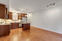 SPACIOUS 585 sqft/ SUB-PENT 1 BED+1 BATH situated in the ever popular Yorkson at Walnut Ridge!! This unit is perfect for first home buyers or investors! Newly painted-Jan 2026 / NEW carpet in bedroom-Jan 2026 & Fridge-Dec 2024. It features an open concept w/gourmet kitchen finished w/granite countertops, stainless steel appliances & island for added seating. Sliding doors in Living Room open up to your very own private South facing solarium, perfect for private relaxation after work. HEAT PUMP/AC , 2 PARKINGS + 1 rolling door storage, EV charger rough-in in the storage, All situated just steps to shopping, amenities, transit, parks, dog parks, schools, trails & much more!! Unit has 2 parking stalls & a separate storage locker w/rollup door & electricity. Ready for quick possession!