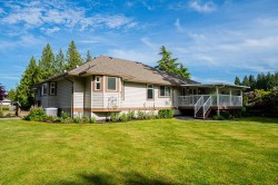 A SALMON RIVER GEM! Sitting on nearly a 1 ACRE CORNER Lot, this BEAUTIFULLY maintained 4 BED/2 BATH RANCHER offers ample SPACE & COMFORT! Features Include: Heat Pump, Furnace (2021), Gas for BBQ on Sundeck (Built in 2010), Windows/Screen (2008), Double Car Garage attached to home, Reverse Osmosis in Kitchen, Well approx 190FT, Well Pump (2019), UV Filter, Built-In Vacuum. 25x29 Detached Shop, great for storage & Car buffs! Ample amount of parking! City Sewer at property line. Certainly a GARDENER’S Dream Property! With a frontage of 196FT, this would also be the perfect lot to build your dream home! Close to #1 Hwy, Fraser Highway, Otter Co-Op, JD Farms, Otter Trail Winery, Schools, and a short drive to Willowbrook Shopping District! THIS IS A MUST SEE!